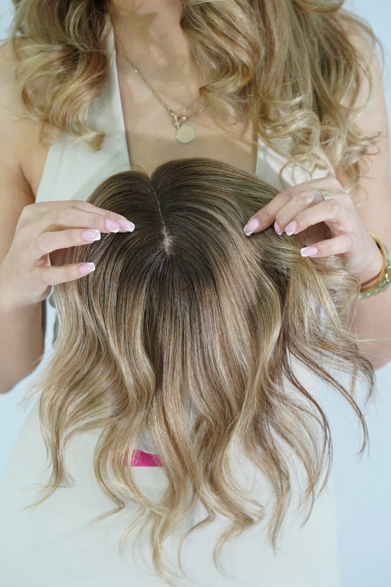 18 ზომა თარგი, ქერა გვერდზე გადაყოფილი, 35 სმ თმა
